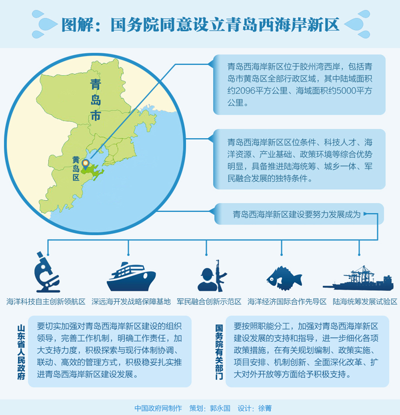 批復(fù)時(shí)間:2014年6月,國務(wù)院同意設(shè)立青島西海岸新區(qū)。
